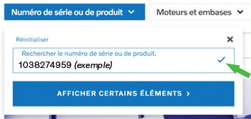 Si votre numéro de série est valide, une petite coche s’affiche sur la droite. Appuyer sur « Afficher certains éléments » pour continuer. Les résultats seront filtrés en fonction de votre modèle moteur ou transmission exact.