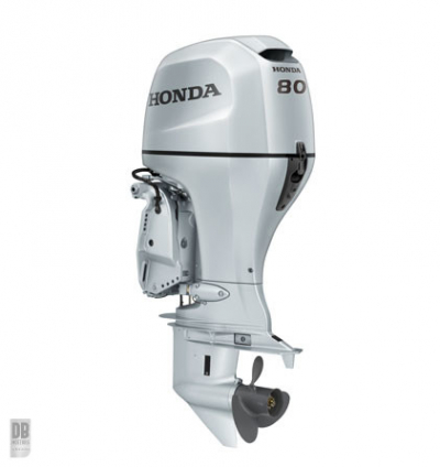Moteur Hors Bord Honda Marine d’une puissance de 80 chevaux 4 temps, Arbre Extra-Long (664mm), Commande à distance manuelle, démarrage électrique, relevage électrique et réglage d’assiette (trim) électrique.