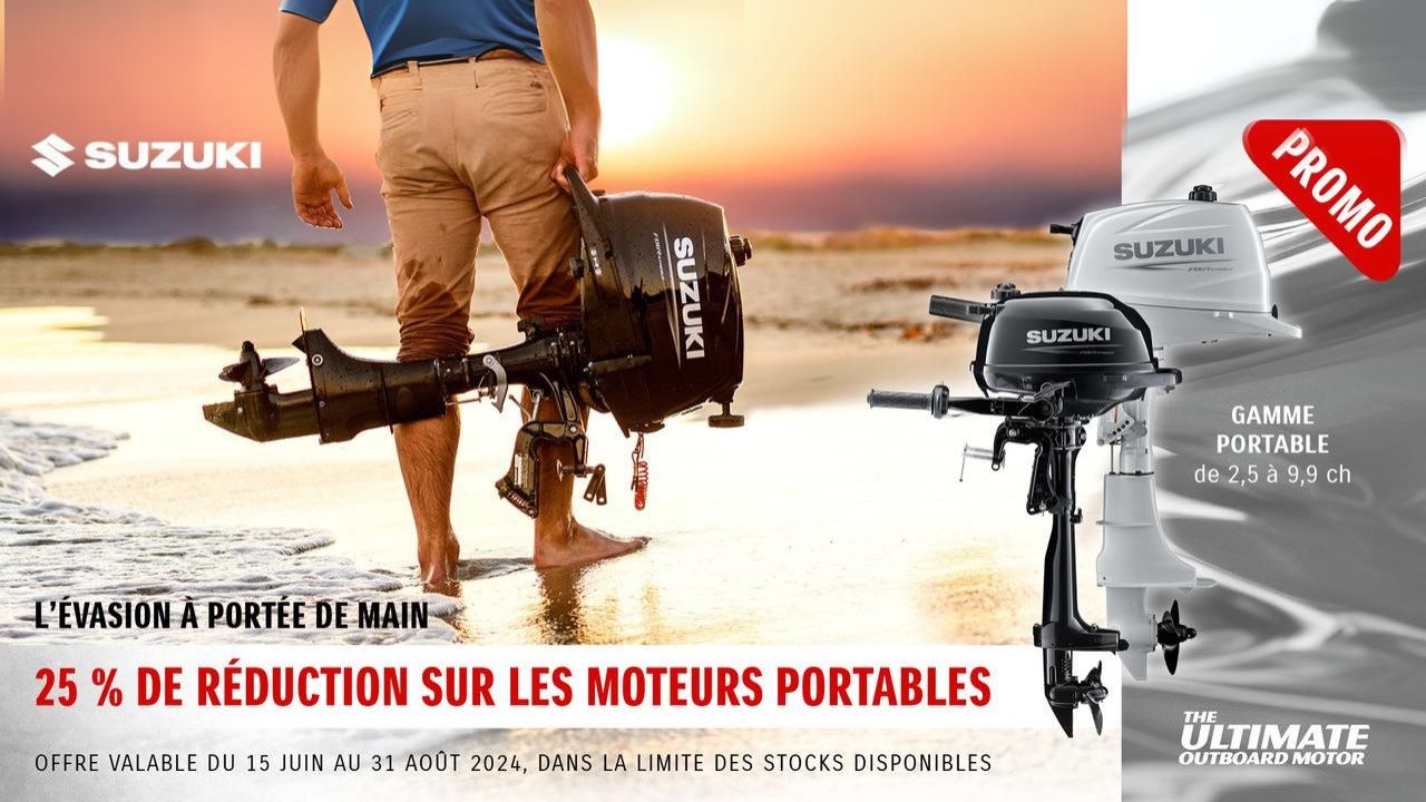 Alors, pour fêter l’été, Suzuki Marine vous fait profiter chez DB Moteurs d’une promotion spéciale de 25% sur les moteurs portables du 2,5 au 9,9 chevaux, comme le DF2.5, le DF6A ou encore le DF9.9A (voir conditions en magasin) !