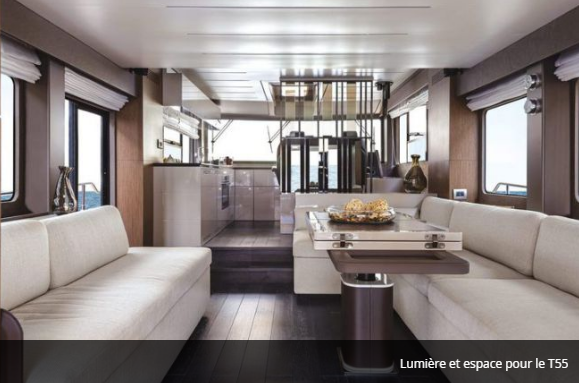 Une évolution du T53 - Le constructeur italien lançait sa gamme de Trawler en 2013 avec le T43. Suivait en 2014 le T53 – un trawler de 17 m de longueur hors-tout – dont le nouveau T55, lancé en septembre 2019 est une évolution. Ce trawler conserve les mêmes dimensions du modèle qu'il remplace mais revient avec un design évolué, pensé par le designer Christian Grande.