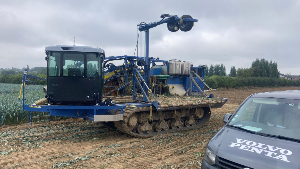 Ce moteur Volvo Penta équipe une récolteuse de poireaux, machine agricole de marque Bouckaert. L'intervention réalisée, la machine peut reprendre du service.