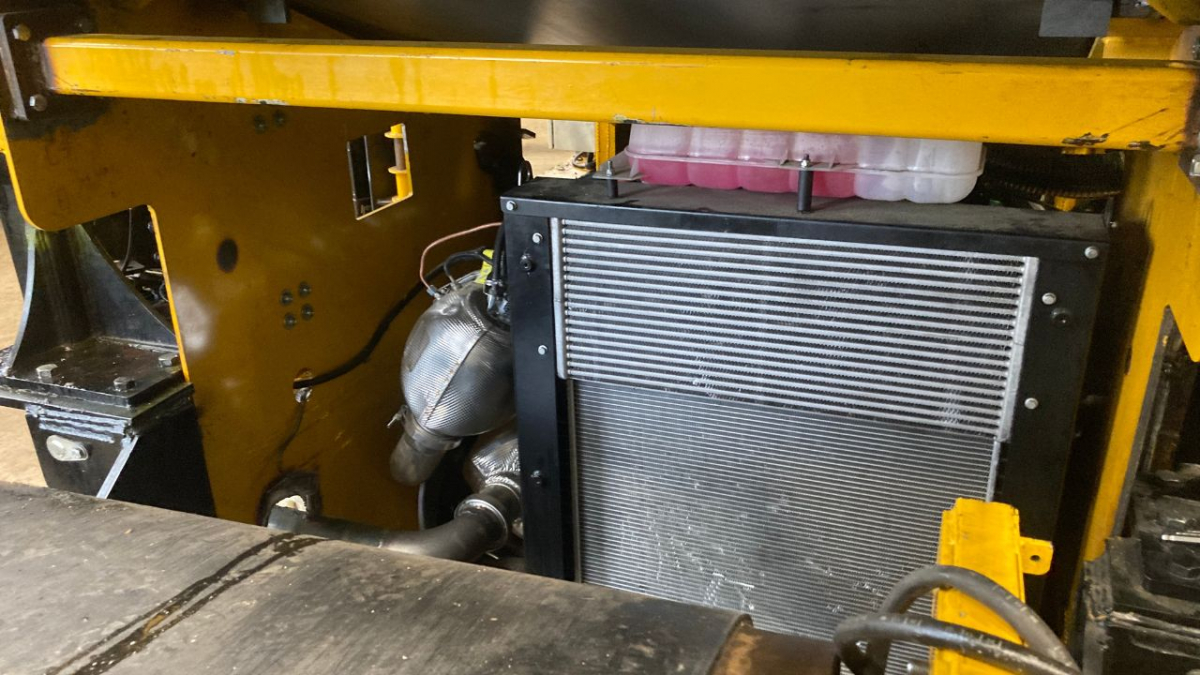 Ce moteur Volvo Penta équipe une machine spéciale neuve pour convoyer l'enrobé, notamment la réalisation de pistes cyclables.