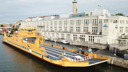 Le ferry Tellus a été commandé par l'administration suédoise des transports et construit par le chantier naval Baltic Workboats, une société estonienne ayant fabriqué plus de 200 bateaux-ateliers et ayant actuellement 30 bateaux-ateliers dans son carnet de commande. Long de 100 m, ce ferry a été construit en 16 mois et peut transporter des voitures, des camions et 300 passagers.