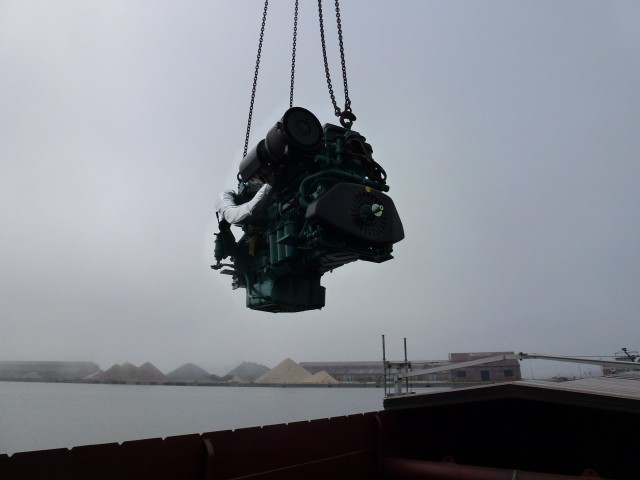 Automoteur FAR AWAY, remplacement d'un moteur GM diesel 2 temps 16 cylindres en V par un moteur VOLVO PENTA D16- MH 650 CV.