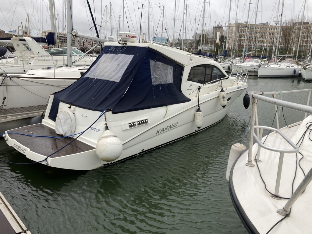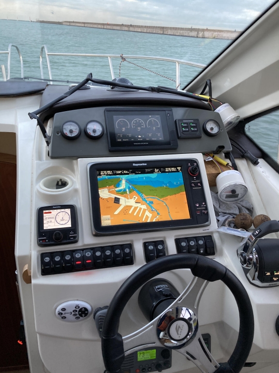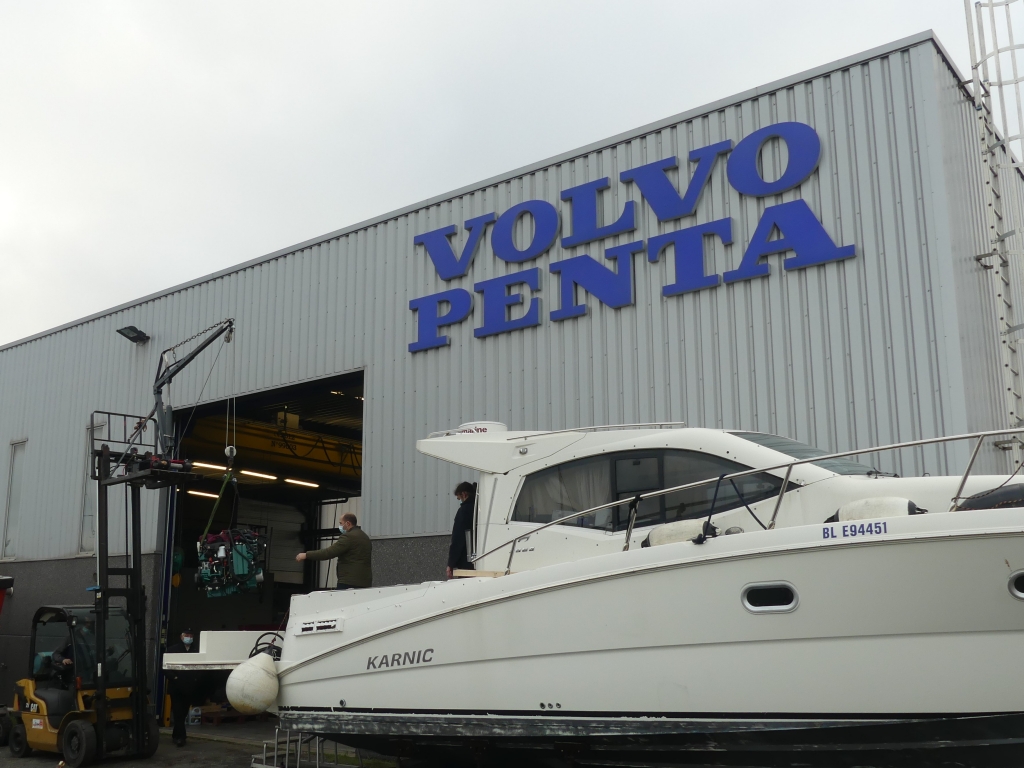 Nous avons remotorisé et transformé un monomoteur en bimoteur. Les performances du bateau ont étées boostées ! Le bateau est passé de 300 chevaux avec un D4-300 à 440 chevaux avec deux D3-220 ! Nous avons travaillé en partenariat avec Bleu Marine pour la stratification et la modification du tableau arrière pour passer d’un monomoteur à un bimoteur.