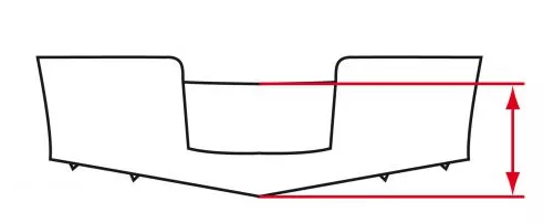 Pour mesurer cette hauteur, relevez la distance entre le centre de la coque (la pointe du V), et le haut du tableau au centre. Attention à bien prendre cette mesure dans l’axe, et non sur les côtés !