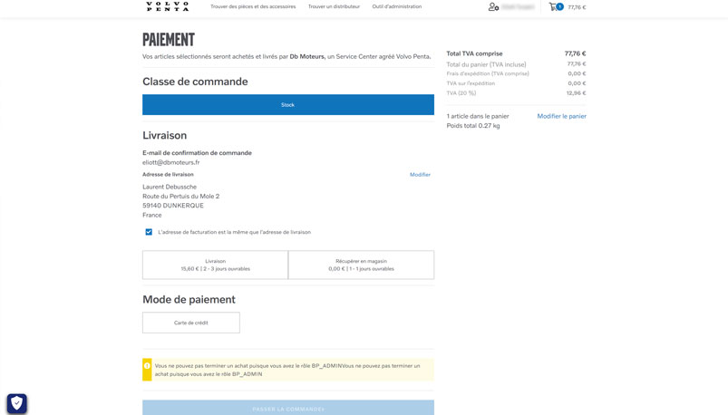 Pour confirmer la commande, vous devez choisir la solution de livraison (livraison ou récupérer en magasin), le mode de paiement puis appuyer sur « passer la commande ».