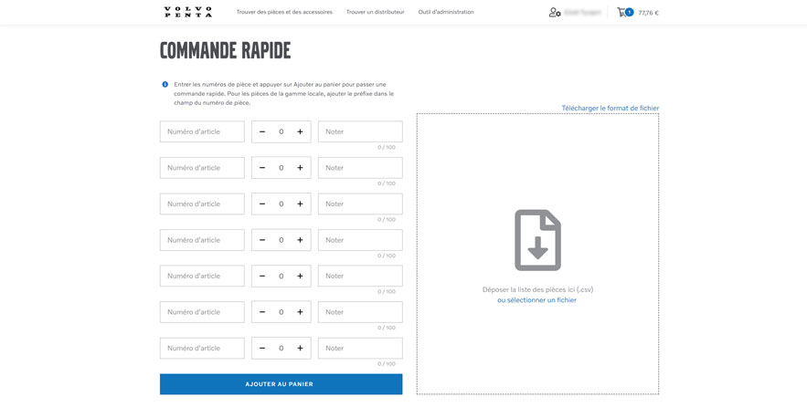 Si vous connaissez toutes les références et les quantités dont vous avez besoin, vous pouvez utiliser la commande rapide.