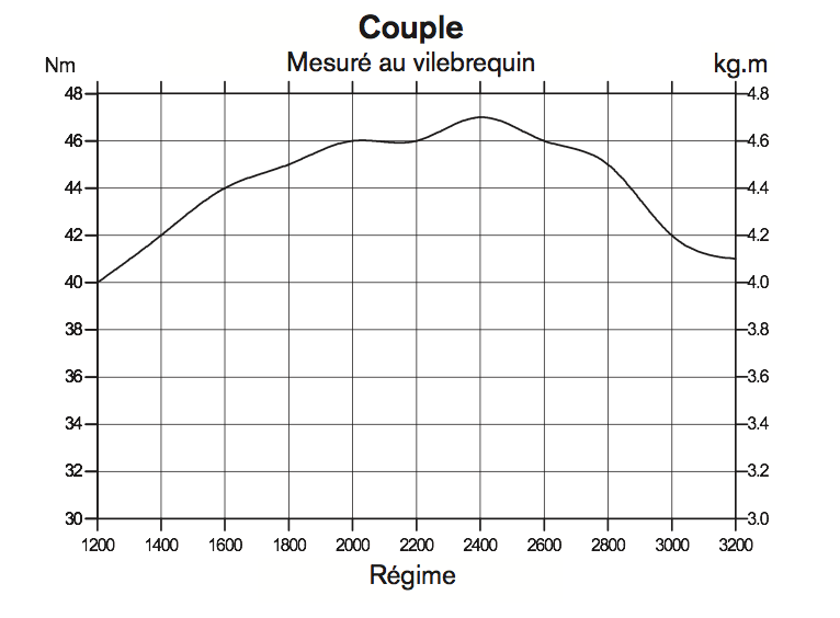 13,8 kW (18,8 ch) : puissance au vilebrequin, conformément à la norme ISO 8665.