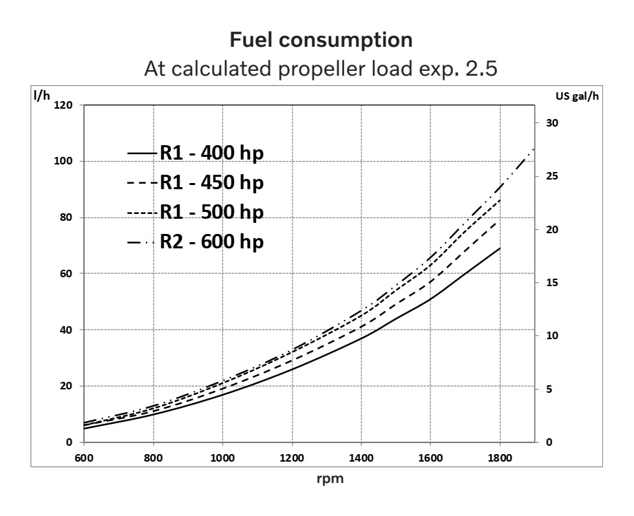 L’état de la mer et le chargement du bateau influencent fortement son comportement et ses performances, notamment à vitesse élevée. Les caractéristiques uniques et le couple inégalé du moteur veilleront à ce que la puissance maximale soit délivrée, ce qui assurera la vitesse optimale dans toutes les conditions et ce, avec une consommation de carburant la plus faible possible.