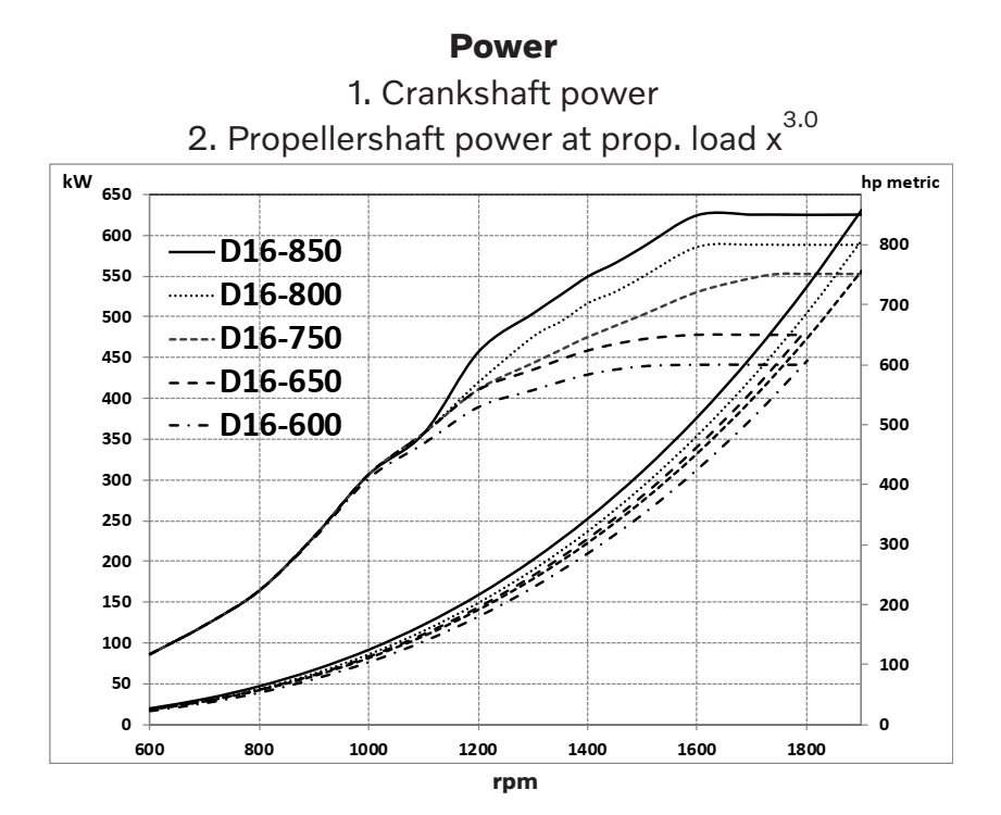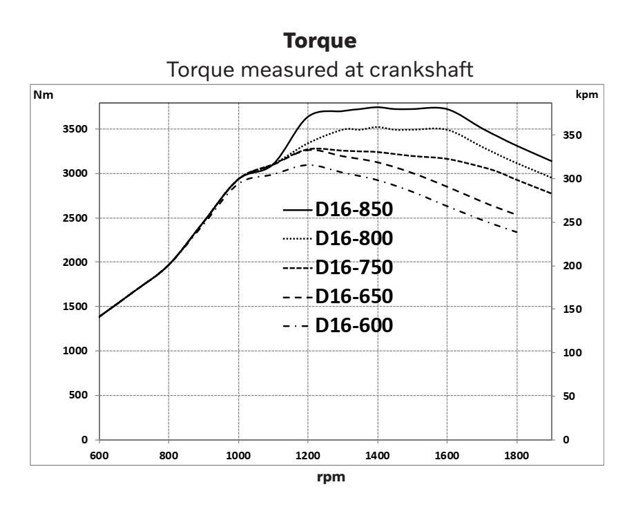 Le D16 est un moteur développé pour une fiabilité extrême à long terme. La conception de base comprend des blocs moteurs robustes fabriqués à partir de pièces moulées à haute résistance, de grandes surfaces d'appui, des vilebrequins puissants avec tous les composants conçus pour résister aux conditions les plus difficiles.
