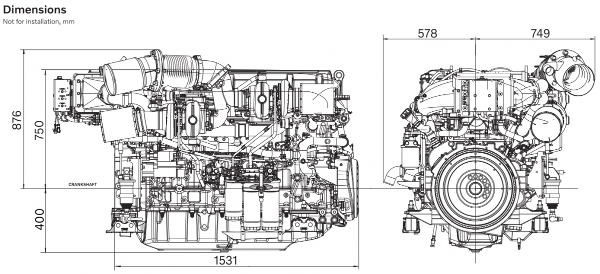 Moteur diesel 6 cylindres en ligne de 16,1 litres.