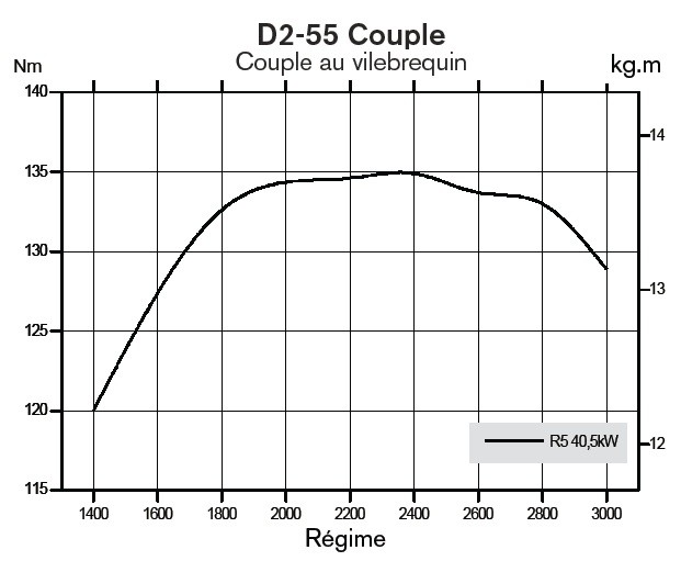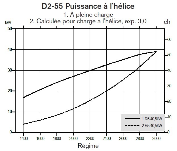 41 kW (55 ch) puissance au vilebrequin conformément à la norme ISO 8665