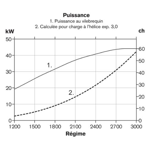 44 kW (60 ch) : puissance au vilebrequin, conformément à la norme ISO 8665.