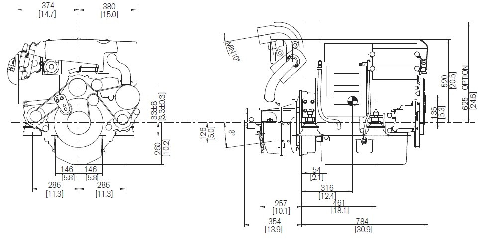- Inverseur avec axe abaissé et angle d’inclinaison de 8° pour une installation compacte et un angle d’arbre d’hélice minimum. Transmission en V et inverseurs en ligne disponibles.