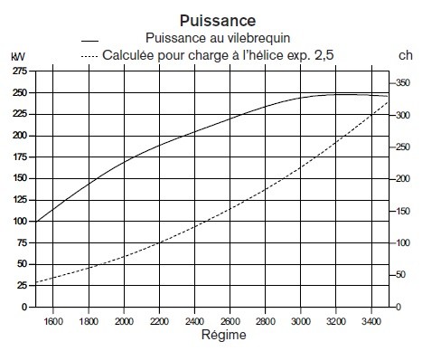 243 kW (330 ch) : Puissance au vilebrequin selon norme ISO 8665.