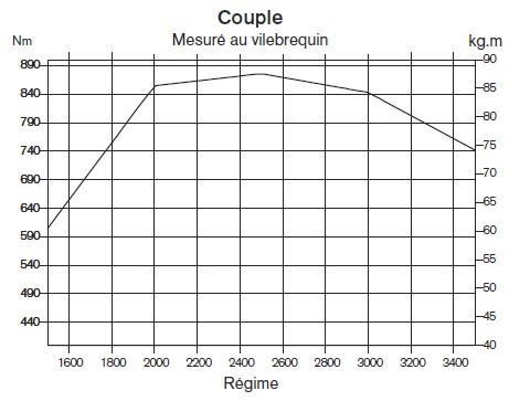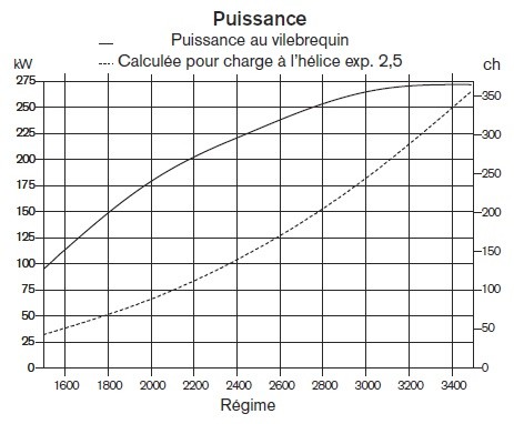 Courbe de puissance moteur D6-370 Volvo Penta Couple moteur D6-370 Volvo Penta Courbe de consommation moteur D6-370 Volvo Penta