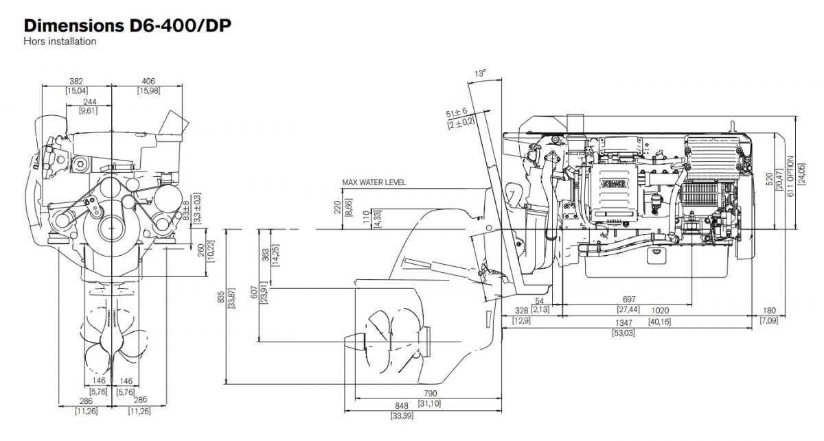 Ce moteur est léger et de faibles dimensions comparativement à la forte cylindrée et à la puissance élevée qu’il développe. Avec le côté transmission entraînant la pompe d’injection haute pression et les arbres à cames, une très forte intégration des systèmes, un échangeur de température à haut rendement, une marinisation effectuée avec moins de tuyauteries et un agencement parfaitement symétrique, ce moteur s’avère extrêmement compact. Le bloc moteur et la culasse très rigide en fonte, la porte-paliers, ainsi que l’injection contrôlée avec précision (jusqu’à 3 phases) permettent d’obtenir un excellent confort à bord avec peu de bruit et de vibrations.