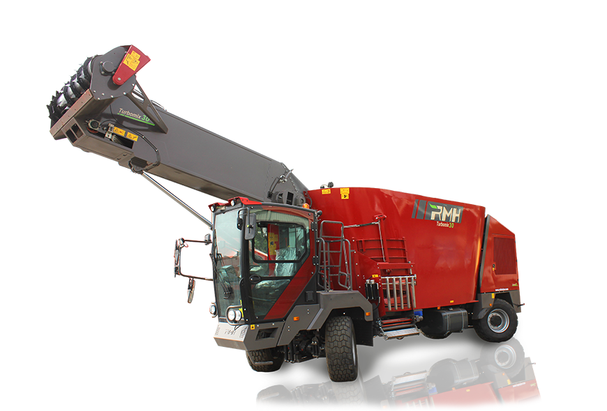 Les RMH Turbomix sont des mélangeurs automoteurs robustes avec capacité disponible de 20 à 30 m3, double vis. Le TurboMix est la plus grande machine lourde de mélangeuse automotrice à chargement automatique pour les grandes opérations, les centres d'alimentation et les exploitations d'élevage.